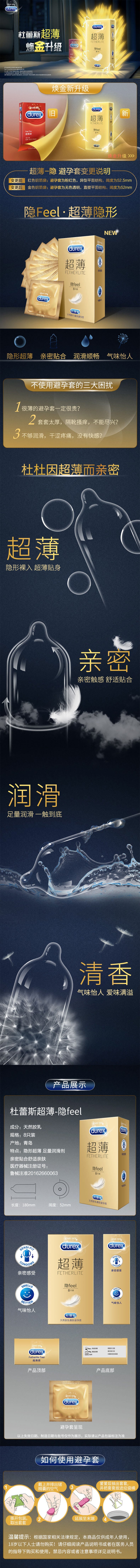 DUREX gold packaging ultra-thin invisible condom Pack of eight