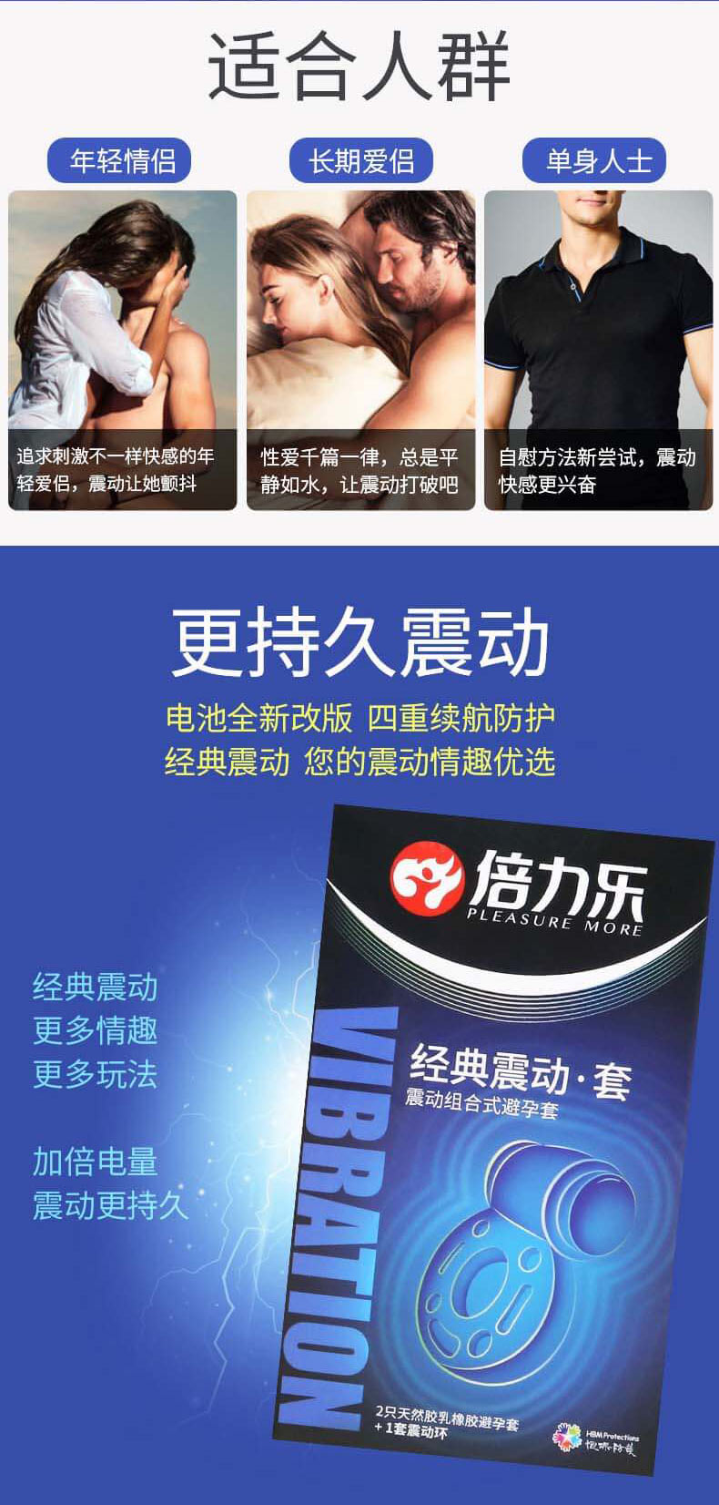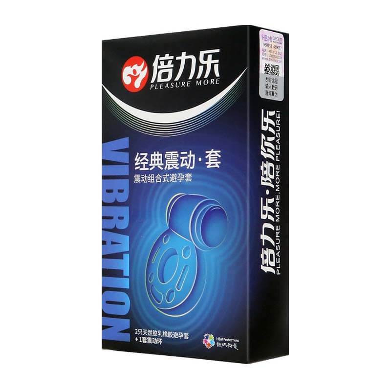 PLEASURE MORE Vibrating Condoms 2 Latex Sheaths + 1 Semen Locking Ring